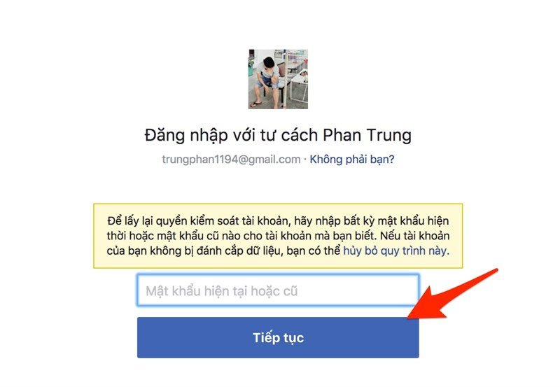 Bước 3: Nhập mật khẩu trước đó mà bạn sử dụng trước khi tài khoản bị hack.