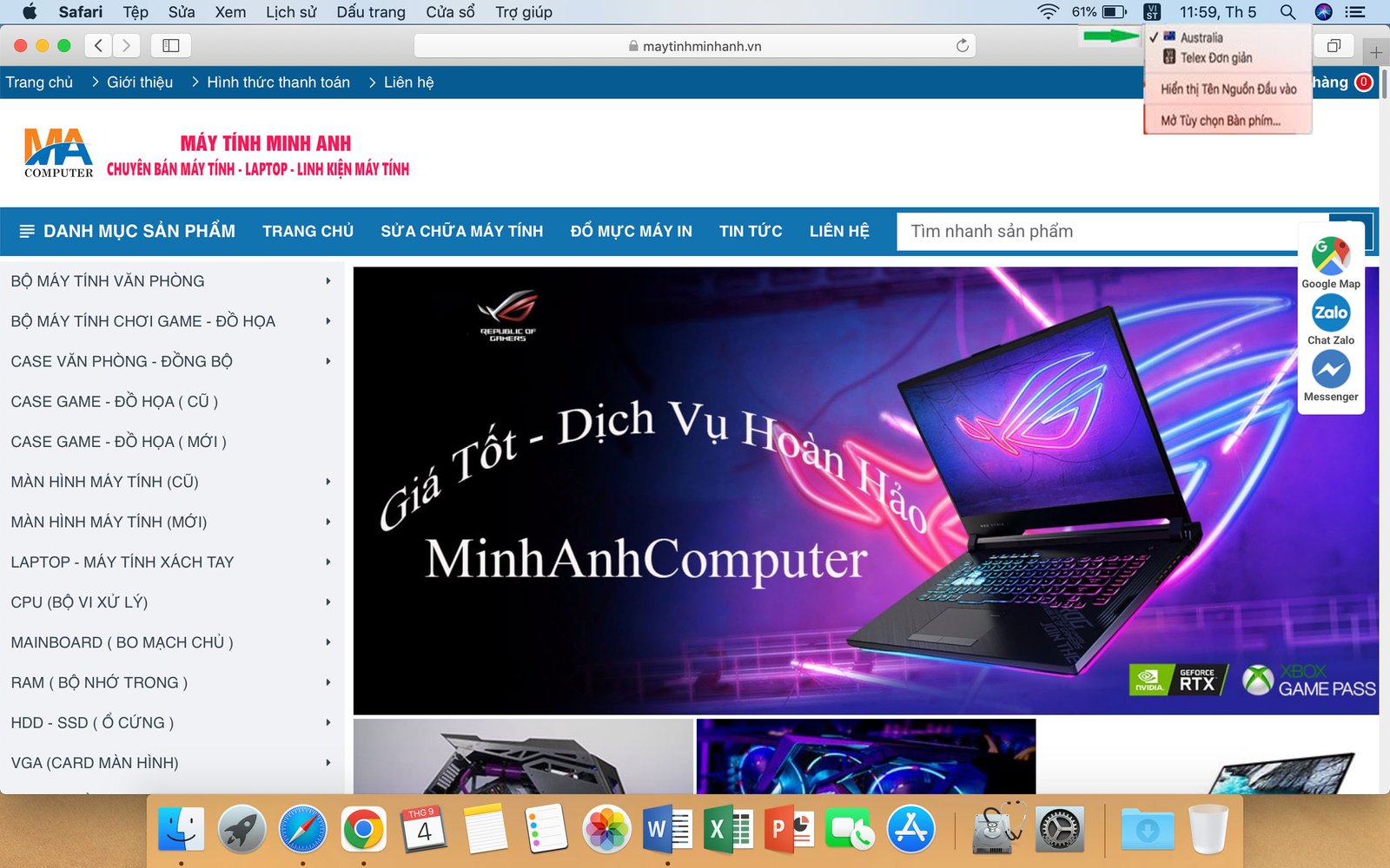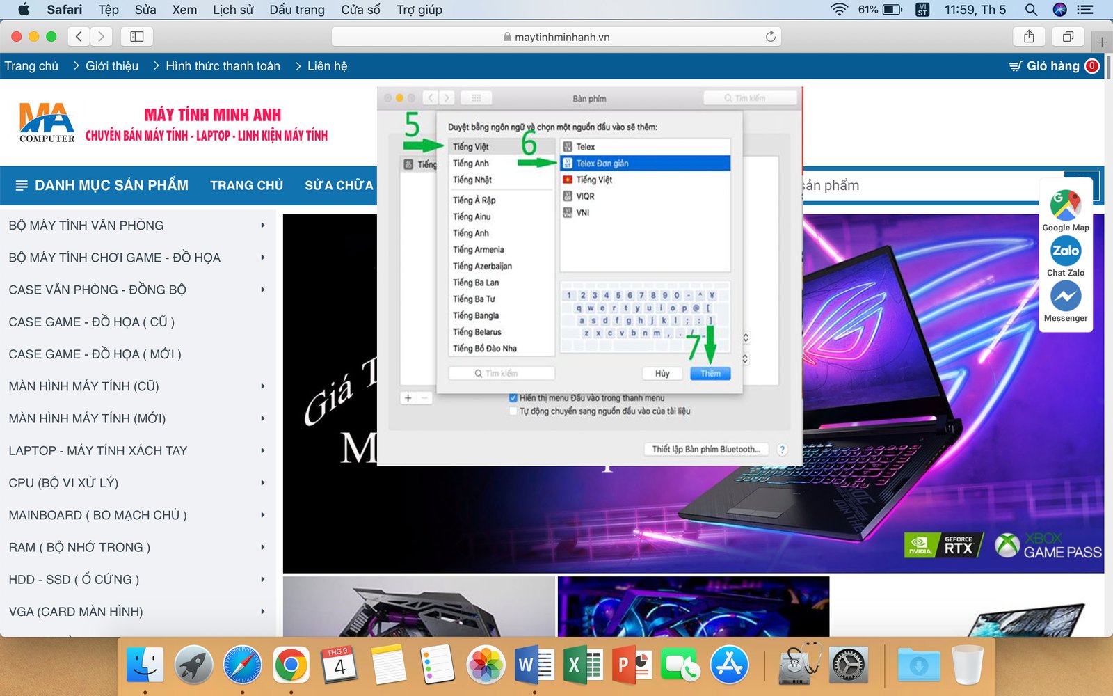 - Bước 6: Chọn bàn phím Austraylia để gõ được phím @, sau đó chọn Telex Đơn giản để gõ Tiếng Việt như bình thường