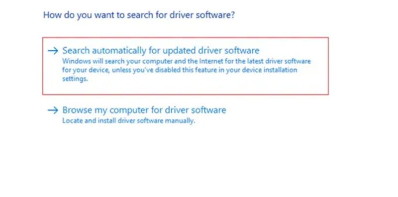 - Trong màn hình tiếp theo, chọn "Search automatically for updated driver software".